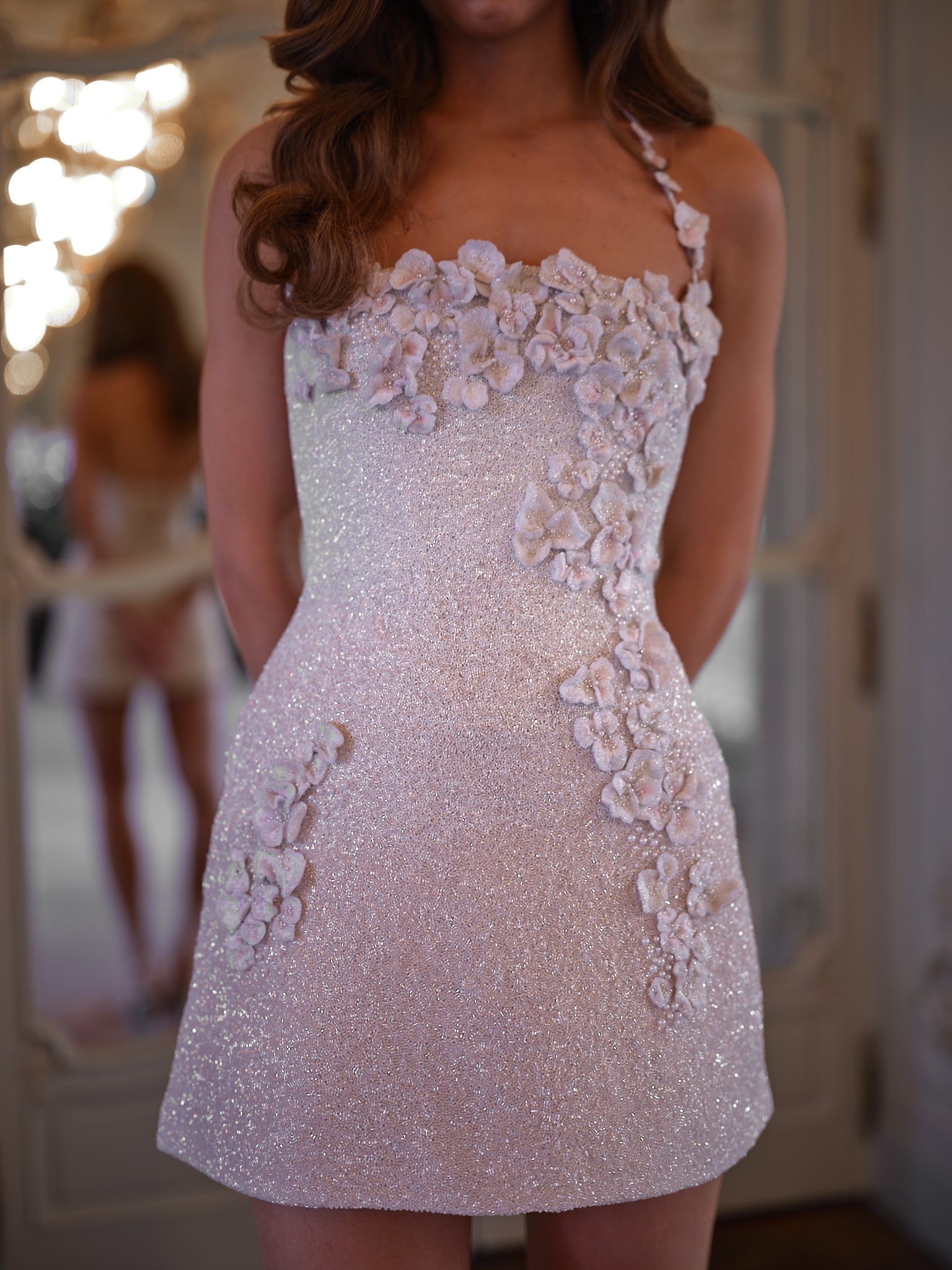 • Material: Hand-beaded ombré fade with dimensional floral appliqué